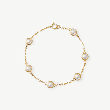 Bezel-set pearls on bracelet for understated luxury and elegance.