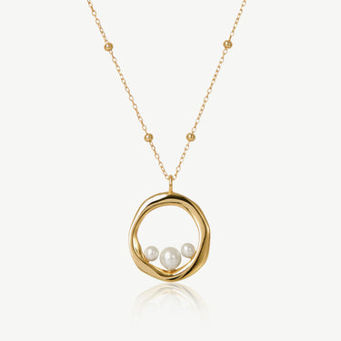 Effortlessly elegant, this pendant necklace frames three freshwater pearls within a polished 18ct gold plated hoop. A perfect piece to elevate your everyday collection.