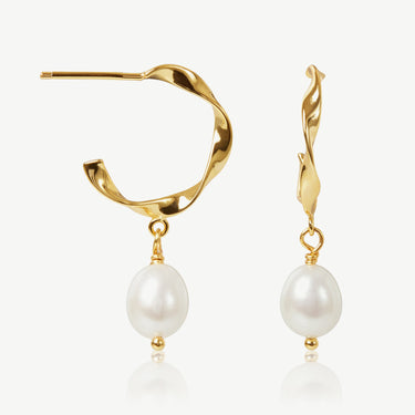 Twisted gold hoops with freshwater pearl drops — unique yet timeless.